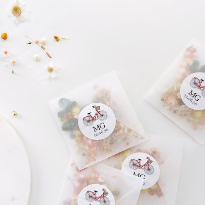 Verzegel jullie trouwkaart met bijbehorende stickers! Laat een kleine hint achter voor je gasten, eenmaal de envelop gesloten...Wees creatief! Gebruik de stickers voor meerdere doeleinden: op potjes, vazen, snoepdoosjes voor de allerkleinsten...