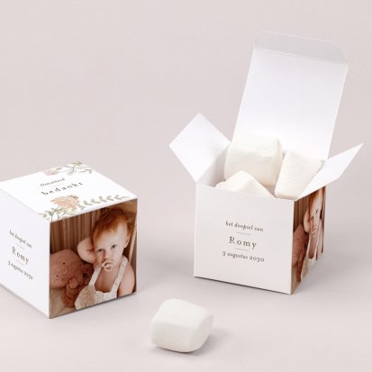 Jullie kind is lekker verwend tijdens zijn of haar doopfeest. Het is tijd om iedereen te bedanken met een mooi doosje vol lekkere snoepjes.