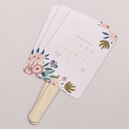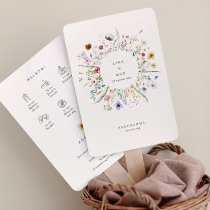 Houd jullie gasten op de hoogte van het trouwprogramma. Leg deze programmawaaiers bij de ingang van de kerk of stadhuis zodat iedereen er een kan pakken. De waaiers geven net dat extra aan de decoratie van jullie bruiloft. Bovendien zijn ze uiterst handig als het erg warm is!