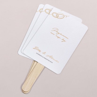 Houd jullie gasten op de hoogte van het trouwprogramma. Leg deze programmawaaiers bij de ingang van de kerk of stadhuis zodat iedereen er een kan pakken. De waaiers geven net dat extra aan de decoratie van jullie bruiloft. Bovendien zijn ze uiterst handig als het erg warm is!