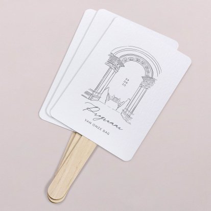 Houd jullie gasten op de hoogte van het trouwprogramma. Leg deze programmawaaiers bij de ingang van de kerk of stadhuis zodat iedereen er een kan pakken. De waaiers geven net dat extra aan de decoratie van jullie bruiloft. Bovendien zijn ze uiterst handig als het erg warm is!