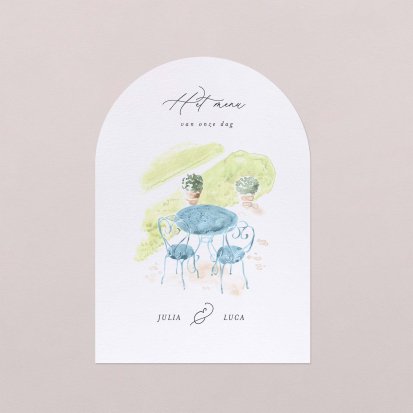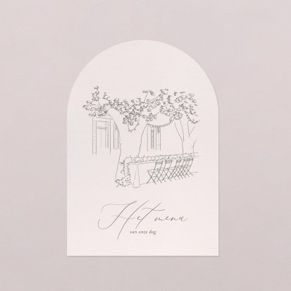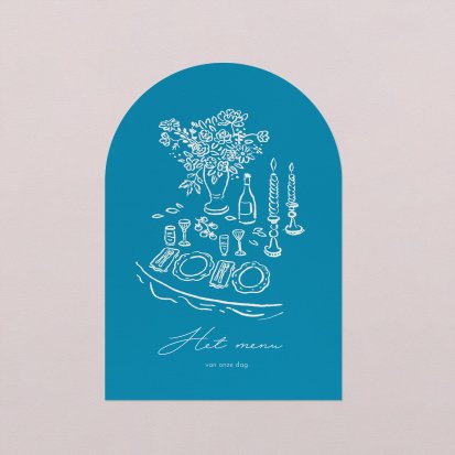 Op de trouwkaart vermeld je of je gasten ook mogen aanschuiven voor het diner. Waar ze van gaan smullen tijdens jullie grote dag blijft een verrassing. Een leuke manier om kenbaar te maken wat jullie gaan eten tijdens het diner, is door menukaarten neer te zetten. Bij Cotton Bird heb je de keuze uit een uitgebreide collectie aan stijlvolle menukaarten. Hier maak je de tafeldecoratie op jullie bruiloft helemaal mee af. Je hebt de keuze uit bruiloft menukaarten in verschillende stijlen. Zo zit er altijd een ontwerp bij dat uitstekend aansluit bij jullie smaak en bruiloft. Met onze online editor pas je de menukaart die jouw voorkeur heeft vervolgens eenvoudig naar wens aan. Zo zet je de puntjes op de i! Met een zelfontworpen menukaart die perfect past bij het thema van jullie huwelijk en trouwkaart zorg je ervoor dat alle decoratie mooi matcht.