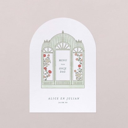 Met een menukaart die past bij je uitnodigingen en andere tafeldecoratie, maak jij de stijl van jouw bruiloft compleet. Laat je menu printen in dezelfde stijl en kleuren als van jullie trouwkaart. Cotton Bird maakt gebruik van papier van de hoogste kwaliteit, waardoor de menukaarten ook een decoratieve functie hebben. Zet de menukaarten neer op de tafels of leg ze naast ieder bord. Je gasten hebben direct een leuk aandenken aan deze schitterende avond. Het is ook leuk om een enkele menukaart per tafel neer te zetten, naast het tafelkaartje. Met onze makkelijk personaliseerbare menukaarten voor jouw bruiloft kun je alle kanten op.
