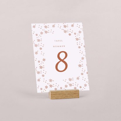 Plaats de tafelnummers op een opvallende manier in het midden van de tafels of plaats de kaarten wat hoger in een leuk kadertje, in een mooi plantje of in een boeket bloemen voor meer originaliteit...