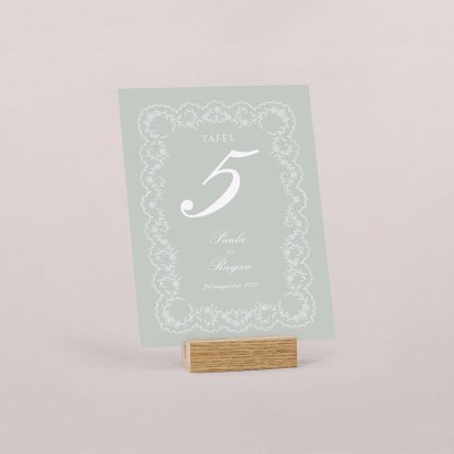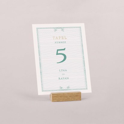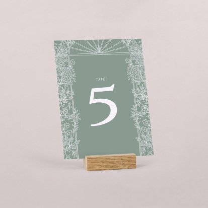 Tafelnummers zet je doorgaans in het midden van de tafel. Ze corresponderen met de indeling die je hebt gemaakt. Bij binnenkomst geef je aan je gasten door aan welk tafelnummer ze plaats kunnen nemen. Duidelijker kan niet en het placeren verloopt georganiseerd. Zo houd je alles in eigen hand.