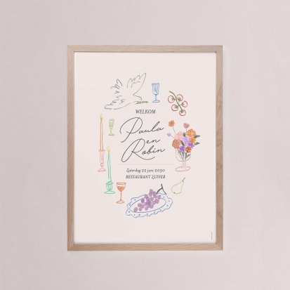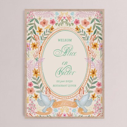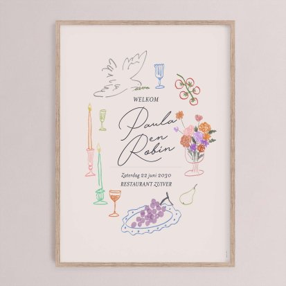 Een bruiloft bord heet de gasten welkom, biedt een drankje aan, en laat niemand met lege handen huiswaarts gaan!