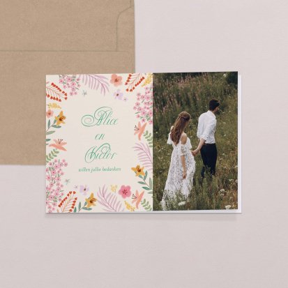 Hebben jullie iedereen al bedankt voor het komen op de bruiloft zelf? Dan wil je misschien niet iedereen nog eens een bedankkaart sturen. Dit kan natuurlijk wel! Zeker bij een klein feest valt het aan te raden om iedereen nog eens een prachtig kaartje te sturen om ze te bedanken voor hun komst en de gezelligheid. Bij een groots feest, kunnen de kosten vanwege bijvoorbeeld de postzegels snel oplopen. Laat dit je niet weerhouden van het versturen van een bedankkaart. Je kunt bijvoorbeeld ook alleen jullie beste vrienden of de familie waarmee je het meest close bent nog een extra kaartje sturen.