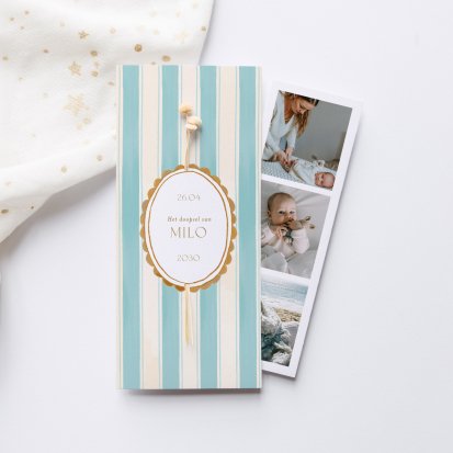 De uitnodiging voor de viering is jullie persoonlijke visitekaartje. Kies dan ook voor een kaartje van Cotton Bird dat bij jullie persoonlijkheid past. Dit kan een heel rustig kaartje zijn of juist een kleurrijk exemplaar. Het is ook leuk om een foto van jullie kind op de voorzijde van de uitnodigingen te laten drukken.
