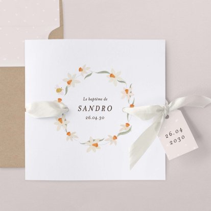 Ontdek onze doopseluitnodigingen en tafeldecoratie. Kleed voor deze dag de tafels in hetzelfde thema dankzij onze bijbehorende menu's en doopsuikerdoosjes.