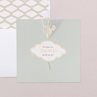 Na het dopen kan je de genodigden verwennen met een lekkere maaltijd of gezellig nog samen wat drinken. Bij Cotton Bird vind je niet alleen schitterend vormgegeven doopseluitnodigingen, maar ook bijpassende tafeldecoratie. Zo versier je de tafels eenvoudig in hetzelfde thema dankzij onze bijbehorende menu's en doopsuikerdoosjes. Ook is het mogelijk om eenzelfde design voor de doopkaart te gebruiken als voor de geboortekaartjes. De keuze is aan jou!