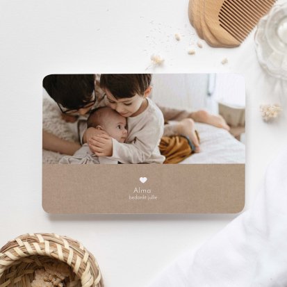 Bedank je dierbaren voor alle knuffels, kusjes en cadeautjes die je kleine uk heeft mogen ontvangen tijdens de babyborrel of kraamvisite.