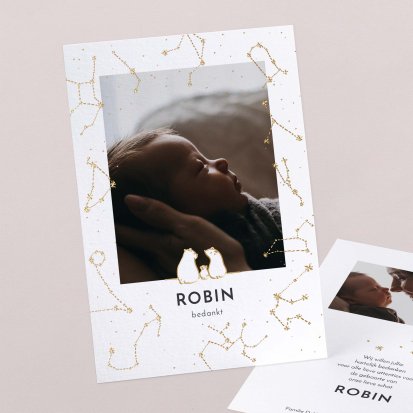 Bedank je dierbaren voor alle knuffels, kusjes en cadeautjes die je kleine uk heeft mogen ontvangen tijdens de babyborrel of kraamvisite.
