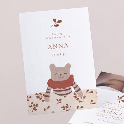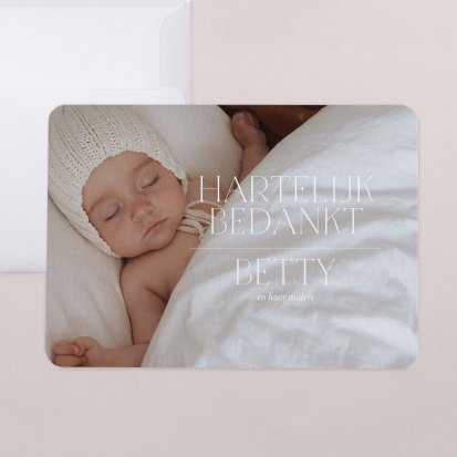 Bedank je dierbaren voor alle knuffels, kusjes en cadeautjes die je kleine uk heeft mogen ontvangen tijdens de babyborrel of kraamvisite.