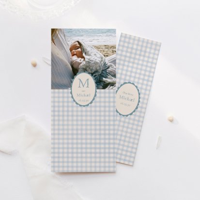 Je maakt het geboortekaartje helemaal af met bijpassende enveloppen en doordachte accessoires zoals sluitzegels. Je bestelt gemakkelijk enveloppen mee in eenzelfde ontwerp als jouw favoriete blauwe geboortekaartje. Op de sluitzegel kan je al de geboortedatum laten drukken of de naam van je kleintje. Zo valt er echt een cadeautje op de deurmat van de ontvangers van het geboortekaartje.