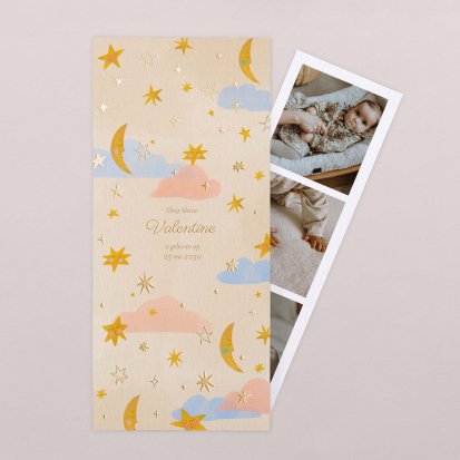 Een origineel of klassiek kaartje, aangevuld met een humoristische tekst of een zacht gedicht naar keuze, geïllustreerd met tederheid of gepersonaliseerd met foto’s van je pasgeboren kindje: jij bepaalt hoe je je baby wilt presenteren!