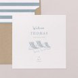 Geïnspireerd door de tijdloze charme van de Baskische stranden viert het geboortekaartje Biarritz met zijn elegante blauwe en witte strepen de mooiste zomerse geboorte. – Kleur: Blauw, Wit – Thema: Origineel, maritiem – Illustraties: Strepen