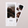 Bij het openvouwen van deze vierkante dubbele geboortekaart, ontdekken familie en vrienden een mooie foto van jullie kindje, samen met een persoonlijk berichtje.