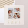 Bij het openvouwen van deze vierkante dubbele geboortekaart, ontdekken familie en vrienden een mooie foto van jullie kindje, samen met een persoonlijk berichtje.
