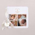 Bij het openvouwen van deze vierkante dubbele geboortekaart, ontdekken familie en vrienden een mooie foto van jullie kindje, samen met een persoonlijk berichtje.