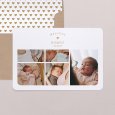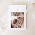 Op de Liefje-geboortekaart staat een compositie van foto's van jullie kindje. De naam van jullie dochtertje of zoontje staat in gouden letters op dit minimalistische en strakke ontwerp, perfect voor ouders die een kaart willen die zowel een aankondiging is als een dierbare herinnering aan de geboorte van hun baby.