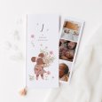 Dubbelzijdige, gevouwen kaart met ronde hoeken. Aan de binnenkant is er ruimte voor de aankondiging en een lief versje. De kaart wordt verkocht met twee etiketjes.