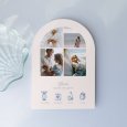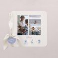 Het geboortekaartje Fotostrip - blauw heeft zachte blauwe tinten en toont een fotoserie van jullie kindje. De details van de geboorte worden mooi weergegeven onder de gekalligrafeerde voornaam, perfect om op een liefdevolle manier te vertellen over zijn of haar komst.