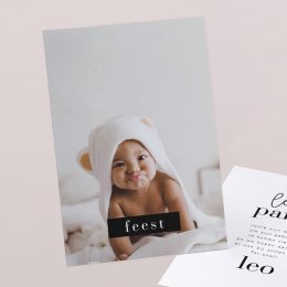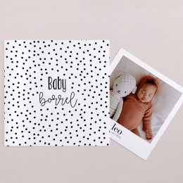 een met een bedanktekst (een berichtje voor iedereen die je kleine heeft verwend) en een met een foto om als herinnering te bewaren.