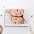 Eenvoud straalt met deze geboortekaart in liggend formaat en zachte afgeronde hoeken.