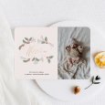 Met gouden accenten, illustraties van hulsttakken en een portretfoto van je baby, vertelt het geboortekaartje "Welkom home" met elegantie en moderniteit over de komst van je kind tijdens de meest feestelijke tijd van het jaar.