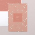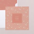 Op dit geboortekaartje Ganzenvlucht vliegen witte vogeltjes met uitgestrekte vleugels in perziktinten. Dit sierlijke, elegante ontwerp zal op poëtische wijze de komst van jullie kindje aankondigen.
