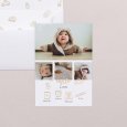 De geboortekaart Toys is geïnspireerd op het favoriete speelgoed van baby's (autootjes, blokken...) en presenteert jullie dochtertje of zoontje op een mooie manier aan jullie naasten. Deze originele geboortekaart is versierd met mooie gouden details en is perfect om de komst van jullie kleintje aan te kondigen.