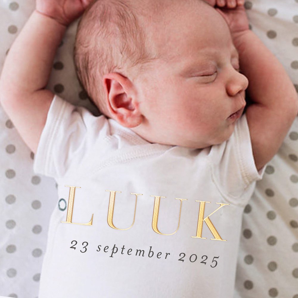 Eenvoud straalt met deze geboortekaart in staand formaat en zachte afgeronde hoeken.