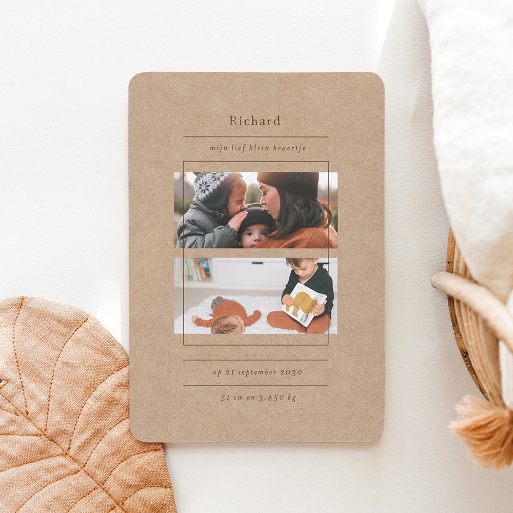 Eenvoud straalt met deze geboortekaart in staand formaat en zachte afgeronde hoeken.