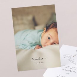Eenvoud straalt met deze geboortekaart in staand formaat en zachte afgeronde hoeken.
