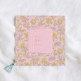 Deze geboortekaart Cashmere kondigt heel feestelijk en enthousiast de komst van een meisje aan! Een zacht gele bloemenprint geïnspireerd door de orientaalse paisley-designs staat mooi in contrast met de roze achtergrond. Een gouden randje en de naam in goudfolie geeft de aankondinging een extra elegante, waardevolle en unieke uitstraling.
