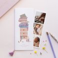 Het Jyoti geboortekaartje heeft een hartverwarmende bohemienachtige illustratie. Een schattig konijntje staat naast een mooie commode met daarop een stapel kleurrijke wikkelkleden. Dit delicate en verfijnde geboortekaartje zal de komst van jullie kleine schat warm inluiden.