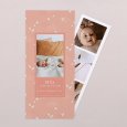 De geboorteaankondiging In de Wolken toont een groep kleine vogels tegen een hemel in zachte perzikroze tinten. Een zacht en vredig ontwerp dat perfect is om jullie geluk op een rustige manier aan te kondigen.