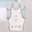 Het theatrale en verfijnde geboortekaartje Mijn kleine opera - blauw onthult achter zijn prachtige blauwe gordijnen de mooiste foto van de baby. Een origineel en zeer elegant ontwerp om de komst van jullie dochtertje of zoontje op betoverende wijze te vieren.