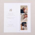 Bij het openvouwen van deze originele dubbele geboortekaart, ontdekt iedereen baby's eerste foto's op een aparte fotostrip, samengaand met de geboortegegevens en een persoonlijk berichtje.