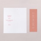 De geboorteaankondiging In de Wolken toont een groep kleine vogels tegen een hemel in zachte perzikroze tinten. Een zacht en vredig ontwerp dat perfect is om jullie geluk op een rustige manier aan te kondigen.