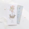 Op het geboortekaartje Over the clouds vliegen schattige dieren tussen de wolken en sterren, op weg naar het mooiste avontuur van uw leven: uw groeiende gezin. Een kleurrijk tafereel met een kinderlijk en tegelijk nostalgisch universum, perfect om uw geluk op een unieke manier te delen.