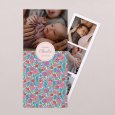 De geboortekaart Valentina is versierd met bloemrijke, grafische en levendige patronen – perfect om een geboorte in de lente aan te kondigen. - Kleuren: Roze, Rood, Paars, Groen, Blauw, Beige - Thema: Origineel, Bloemen, Rustiek, Kleurrijk - Illustraties: Bloemen