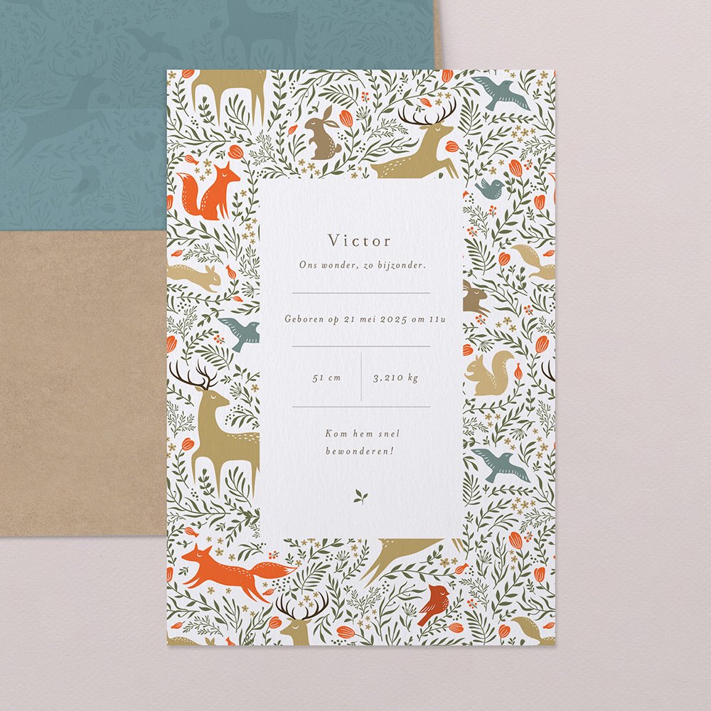 Wemelende lieve diertjes kondigen de unieke gebeurtenis van de komst van jullie kleine uk aan. Een mooi evenwicht tussen trendy illustraties en strakke tekstopmaak. Verras vrienden en familie met het model Fabel.