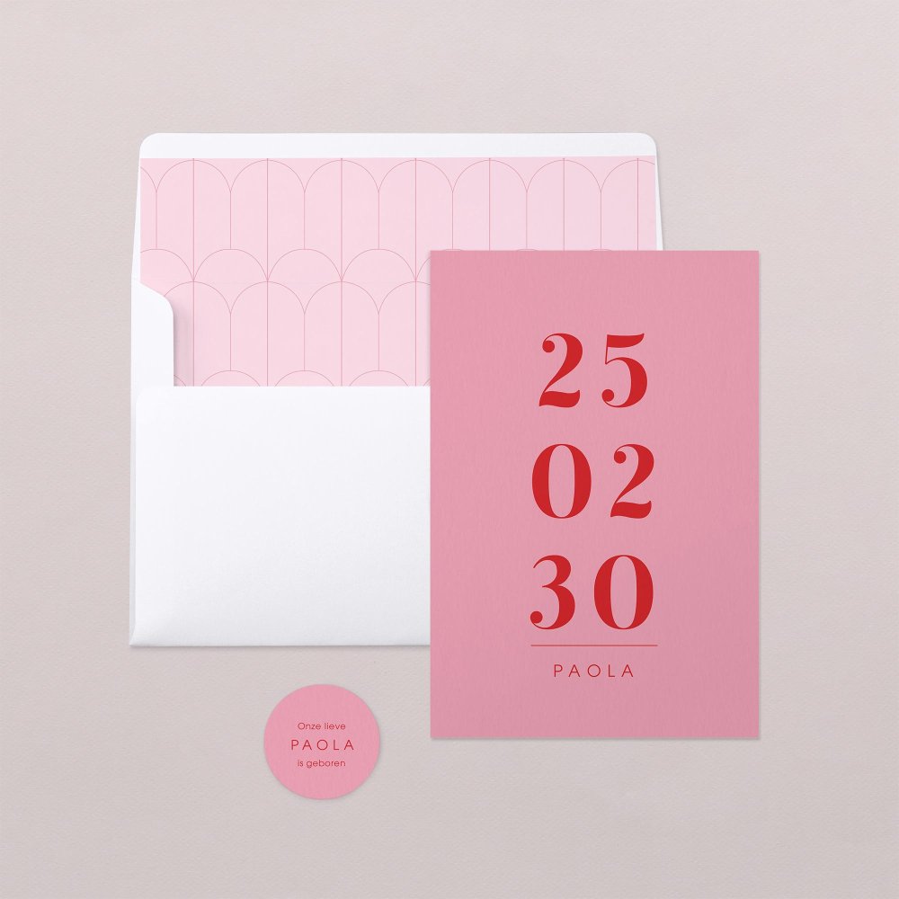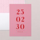 De geboortekaart Candy verkondigt de vurige liefde voor je pasgeboren kindje in felle roze en rode tinten. Opvallende kleuren en moderne opmaak zetten de geboortedatum van je meisje of jongen sprekend in de kijker. Een originele geboortekaart met een kleurrijke en minimalistische uitstraling voor een vreugdevolle aankondiging van de geboorte van je dochter of zoon.