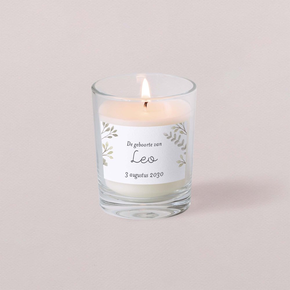 De kleine geurkaars is een geschenk om je dankbaarheid te tonen. Dankzij het transparante glas kan dit mooie cadeau lang bewaard worden als herinnering aan de geboorte van jullie kindje.