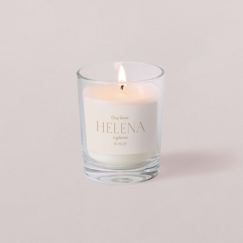 De kleine geurkaars is een geschenk om je dankbaarheid te tonen. Dankzij het transparante glas kan dit mooie cadeau lang bewaard worden als herinnering aan de geboorte van jullie kindje.