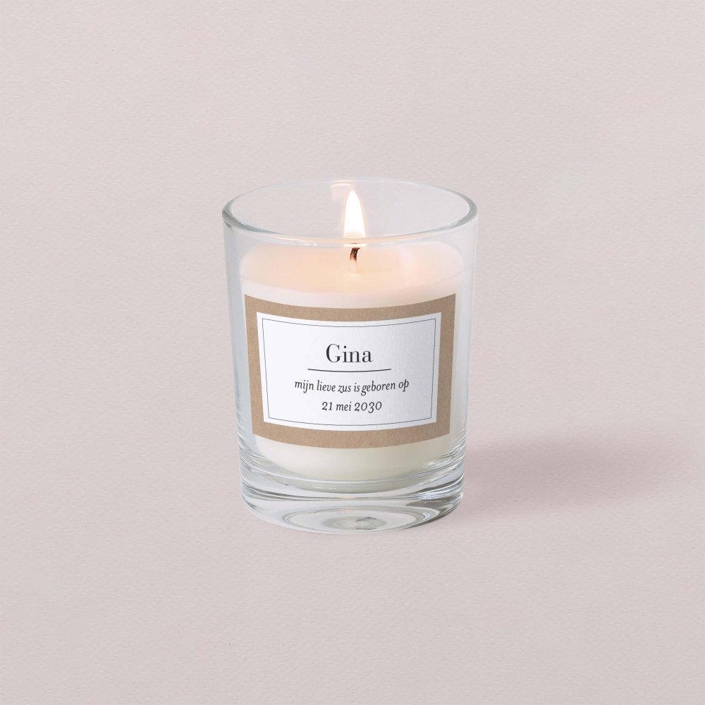 De kleine geurkaars is een geschenk om je dankbaarheid te tonen. Dankzij het transparante glas kan dit mooie cadeau lang bewaard worden als herinnering aan de geboorte van jullie kindje.