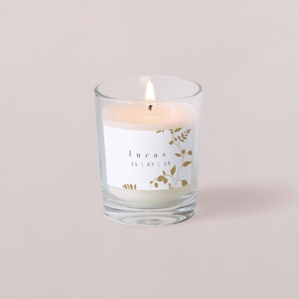 Deze kleine kaars, vervaardigd in Frankrijk, wordt geleverd met een zelfklevend etiket dat je zelf kunt personaliseren en aanbrengen.
