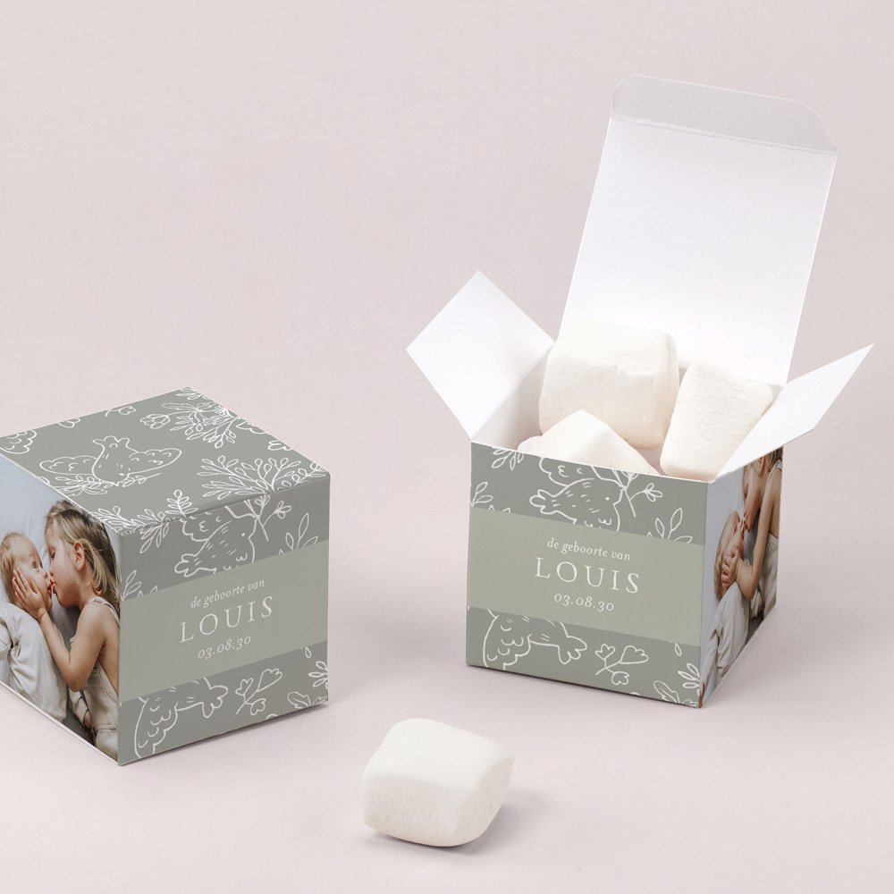 Een verrassingsdoosje als cadeautje voor je familie en vrienden, een mooie herinnering aan de geboorte van jullie kleine. Een kleine kubus van 5,4 x 5,4 cm waarin verschillende soorten lekkernijen kunnen. Laat je creativiteit de vrije loop!