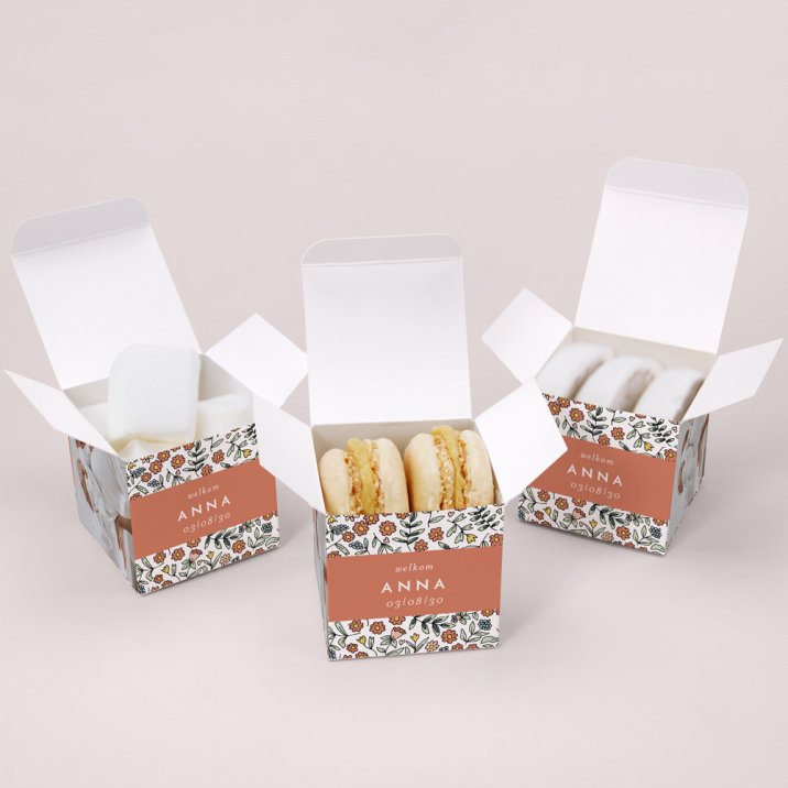 Een verrassingsdoosje als cadeautje voor je familie en vrienden, een mooie herinnering aan de geboorte van jullie kleine. Een kleine kubus van 5,4 x 5,4 cm waarin verschillende soorten lekkernijen kunnen. Laat je creativiteit de vrije loop!
